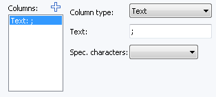Select the input fields in the "Column type" field. In this example, first select the "Text" column type with the special character "Newline".