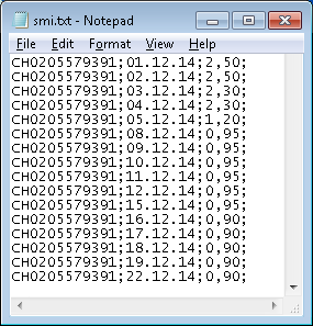 You can now open the exported file daxwerte.txt in a text editor and process it further if necessary. Once you have familiarized yourself with the principle of exporting price data, you will soon be able to design the format of the output as you wish.