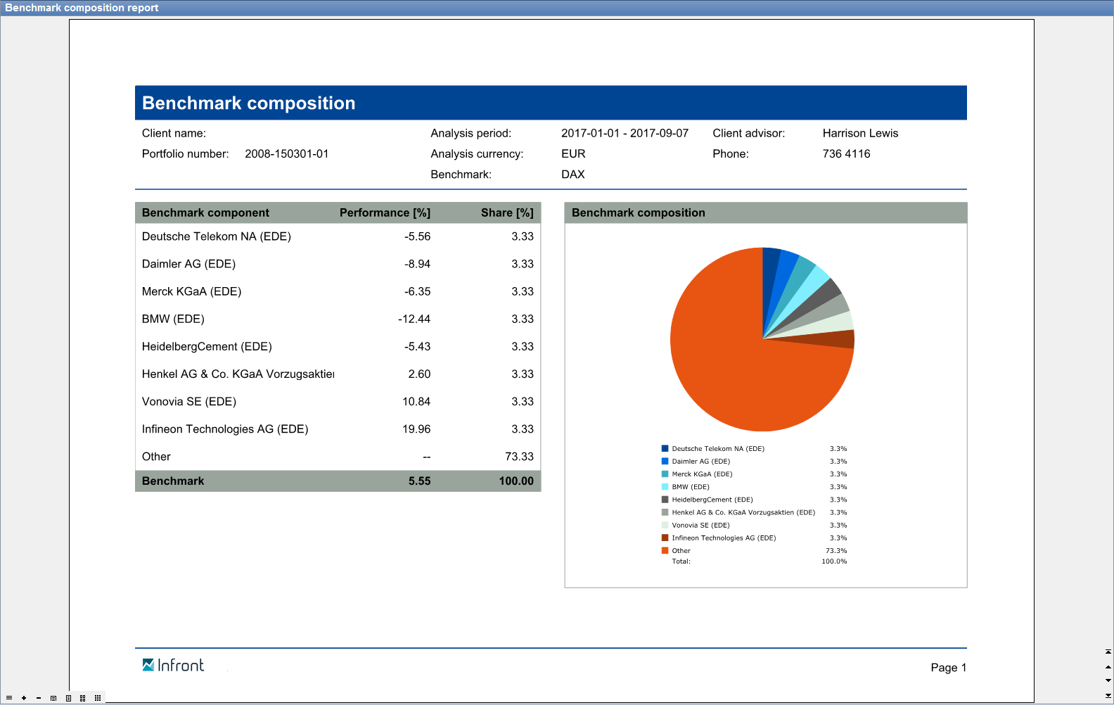 The benchmark valid on the evaluation date is always displayed at Report Benchmark composition .