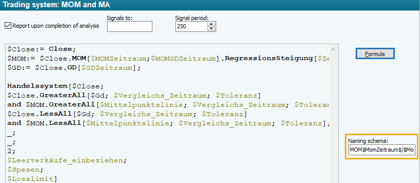 The aim of a trading system is precisely the optimization of variables. It therefore makes sense to display the values found in the chart. To do this, you must include the variables that are to be displayed in the designation scheme.