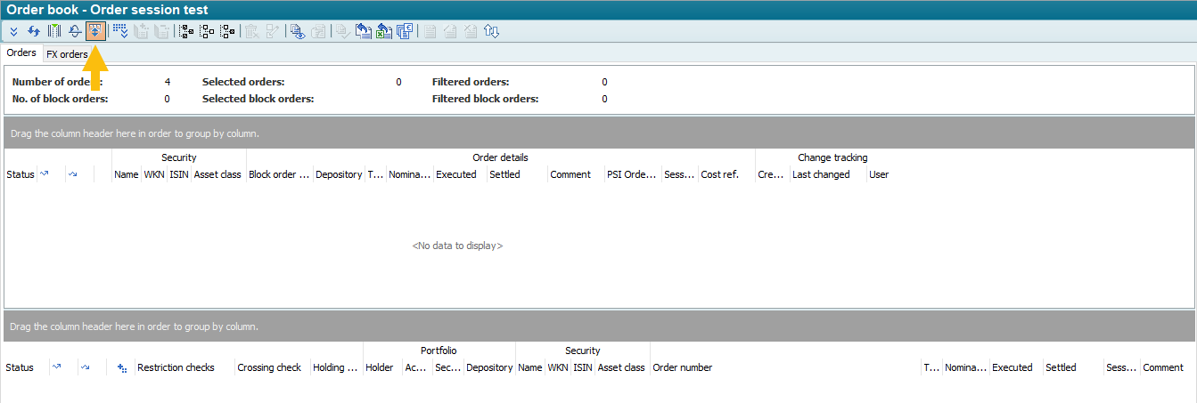 Use the filter functions in the column header to filter extensive block order lists according to the execution status.