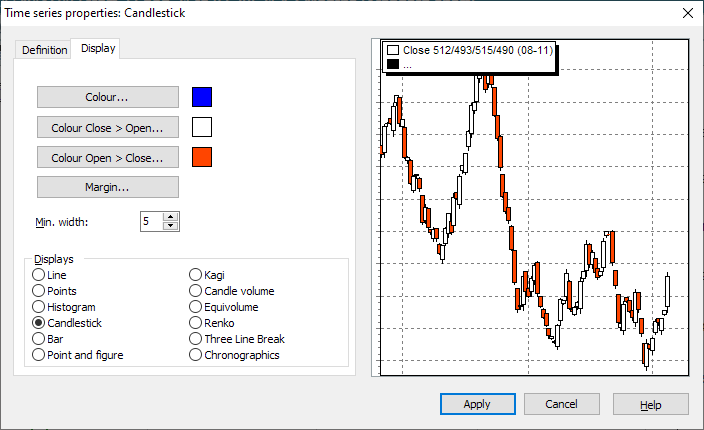 - Then select the DISPLAY, CANDLESTICK command in the context menu of the selected time series.