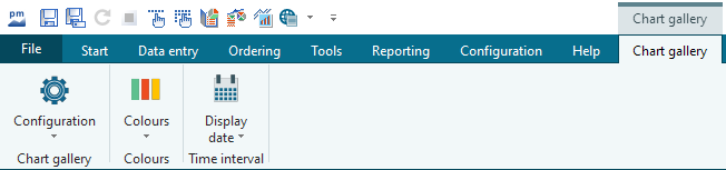 As soon as you open the chart gallery, the "Chart gallery" tab is added to the vwd portfolio manager ribbon. There you can modify various settings of the chart gallery.