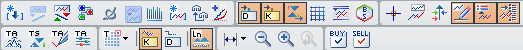 The toolbars with the icons are always displayed in the chart window. These icons conceal functions relating to chart analysis. You execute a command by clicking on an icon.
