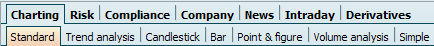 As soon as you call up a security chart, various worksheets (tabs) with chart templates are displayed in the workspace of the security under the "Charting" worksheet.