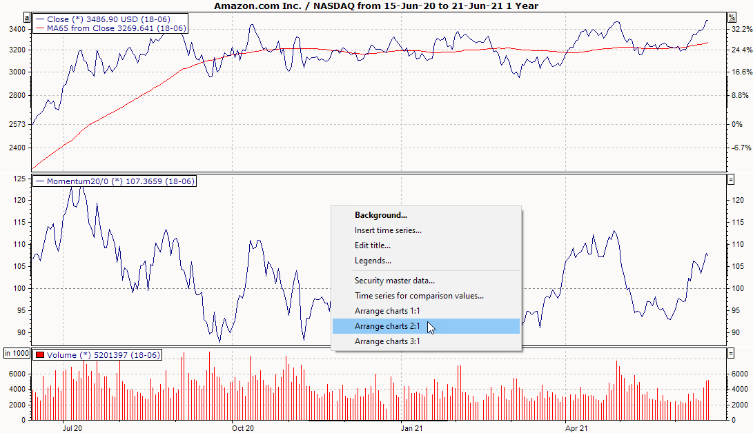 - Select the ORDER CHARTS 1:1, ORDER CHARTS 2:1 or ORDER CHARTS 3:1 command from the context menu.