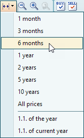 In the toolbar of the chart window, you can set the most popular time periods with one click. Proceed as follows: