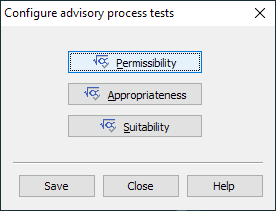 Close | Close the "Configure advisory process checks" dialog window by clicking the "Close" button. If you have not yet saved the changes, a corresponding confirmation prompt appears. |