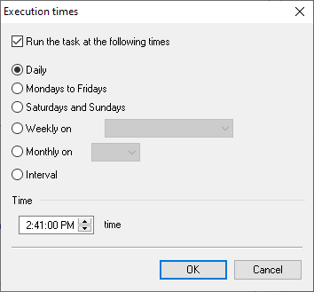 Activate the "Perform the task at the following times" checkbox or leave it activated (default setting).