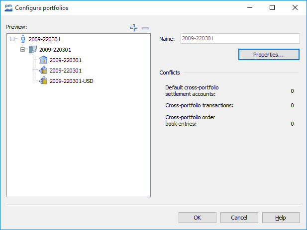 Check and correct the conflicts if necessary. If, for example, there are accounts in several portfolios, the dialog box cannot be closed with "OK" and the configuration cannot be saved.
