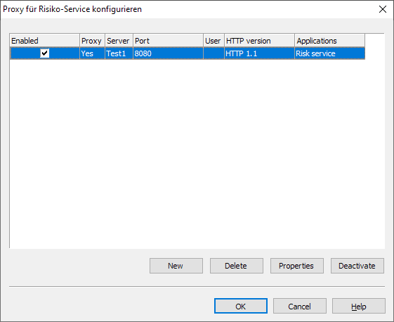 Details on the individual functions in the "Configure proxy for risk service" dialog box: