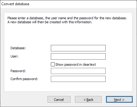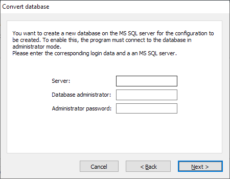 A new database is created if the corresponding option was selected. Once the database has been successfully created, a corresponding message informs you of this. If a connection to the database could be established, a dialog box appears in which you can see once again which configuration is being converted to which. - Select "Start".