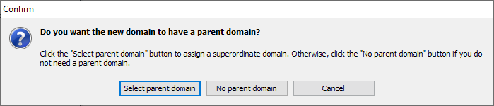 Select this button to assign an existing domain as the parent domain to the new domain to be created in the "Select domain for new object" dialog box that then appears.