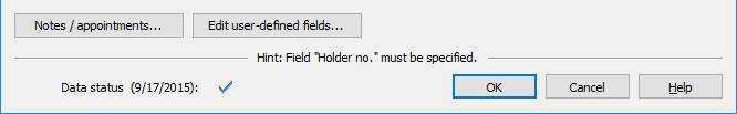 If you have configured plausibility checks for the correct entry of the owner properties, it is essential that you observe the corresponding notes and warnings in the dialog boxes. The messages appear at the bottom of the dialog box (above the "OK" button). Click on the message texts to find out more details.