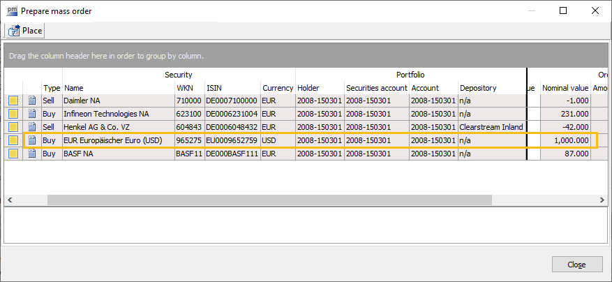 After releasing the FX orders in the order book, you can also prepare them for collective ordering in the same way as for securities orders.