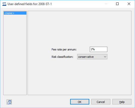 All objects for which at least one user-defined field has been created have the USER DEFINED FIELDS command in the context menu. For securities you will find this command under the menu item SECURITY PAPER, for price quotations under PRICE NOTE, for folders under the item ORDER, etc. Selecting this command takes you to the window with the user-defined fields.