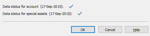 When entering transactions, it is important to enter data correctly. You have the option of storing a data status in the master data of holders, portfolios, accounts and custody accounts. Each time a new entry is made in the "Data status" dialog box, the "Date of last change" is also updated. Possible statuses: