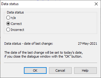 Then activate the desired data status in the "Data status" dialog box that appears, e.g. "Correct".