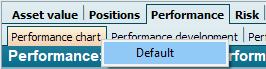 You can change the default page, i.e. the first page opened in the workspace, for all object types - e.g. folders, securities accounts or even securities. If, for example, you would like to see the performance chart for a holder first instead of the asset overview that is always displayed first by default, proceed as follows: