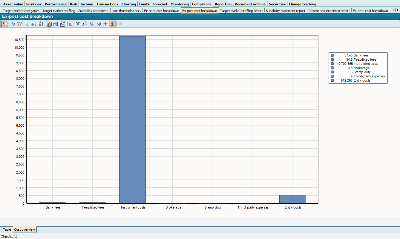 The bar chart shows the amount of the individual cost items in the current evaluation currency.