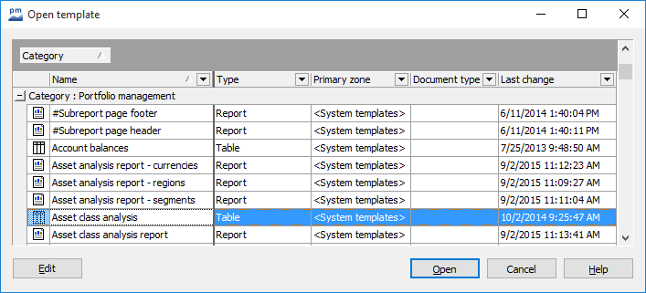 - Select the command OPEN WITH TEMPLATE... in the context menu of an Explorer object. The "Open template" window appears.