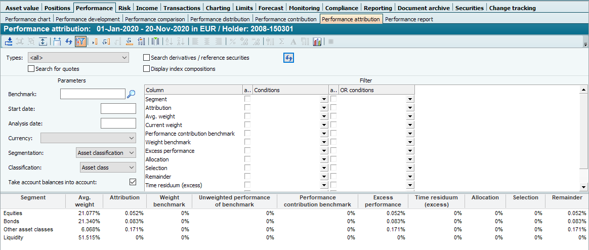 Compared to the "Performance attribution" evaluation, the "Performance attribution" contains the following additional columns: