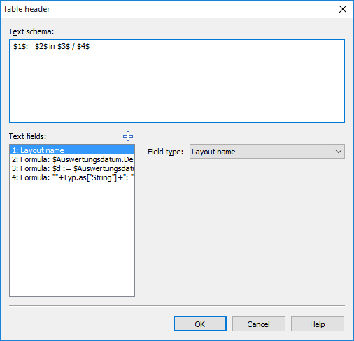 Dynamic headings allow you to enrich static text with information that changes from evaluation to evaluation. For example, you can prefix a tabular evaluation with the evaluation date or other parameters that are redefined for each evaluation (e.g. the currency).