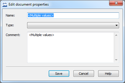 If you are editing several documents at the same time whose properties do not match, this is indicated in the dialog box as follows: