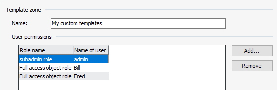 User authorizations | Take the user authorizations for this template zone from this table. For details, read the description in the previous section Edit object zones. |