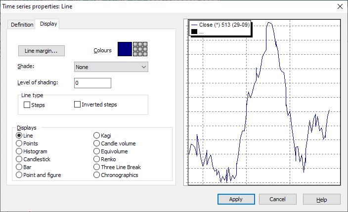 General settings for time series (Display tab)