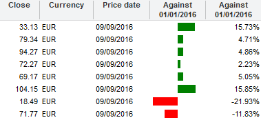 To change the display format of a column to "bars", select the DISPLAY, BARS command in the context menu of the column. For configuration, select the command PRESENTATION, FORMAT.