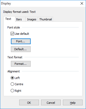 Settings for "Text" display format