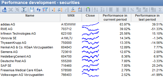 To change the display format of a column (with time series formula) to "Thumbnails", select the DISPLAY, THUMBNAILS command in the context menu of the column. For configuration, select the command PRESENTATION, FORMAT.