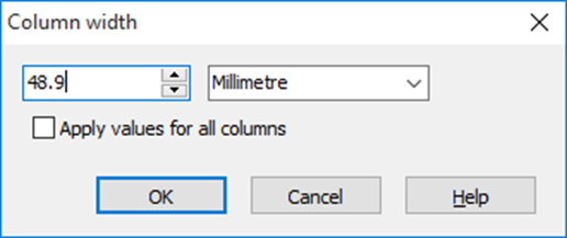 - If the set width is to be assigned to all columns in the table, activate the "Apply value to all columns" checkbox.