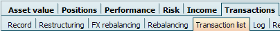 Select the "Transaction list" worksheet there. The transaction list for this holder opens.