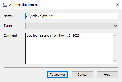 Select the "Archive document" icon at the top of the "Document archive" worksheet. Or press the key combination<CTRL>+<ALT>+<M>.