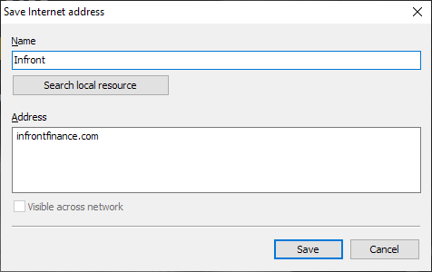 The "Save Internet address" dialog box opens. - Enter the name for your favorite page in the "Name" field. You will find the open website in the "Address" field.