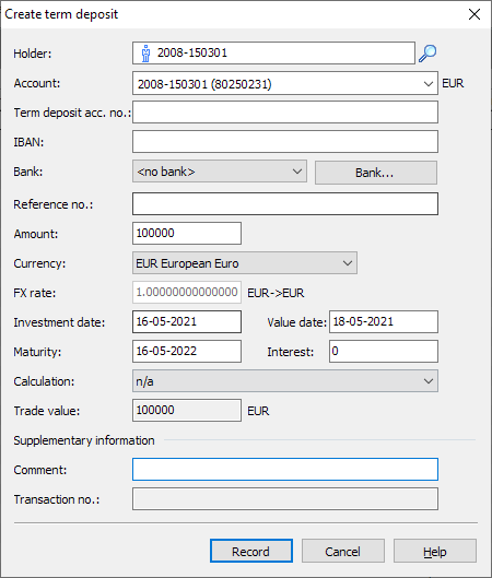 Enter the value date here. Interest on fixed-term deposits is then calculated from the value date.