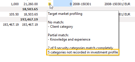 The FIDLEG settings are also taken into account in portfolio rebalancing. The categories not used for profiling - in this case, for example, the non-FIDLEG categories - are ignored. Corresponding information appears in the notes.
