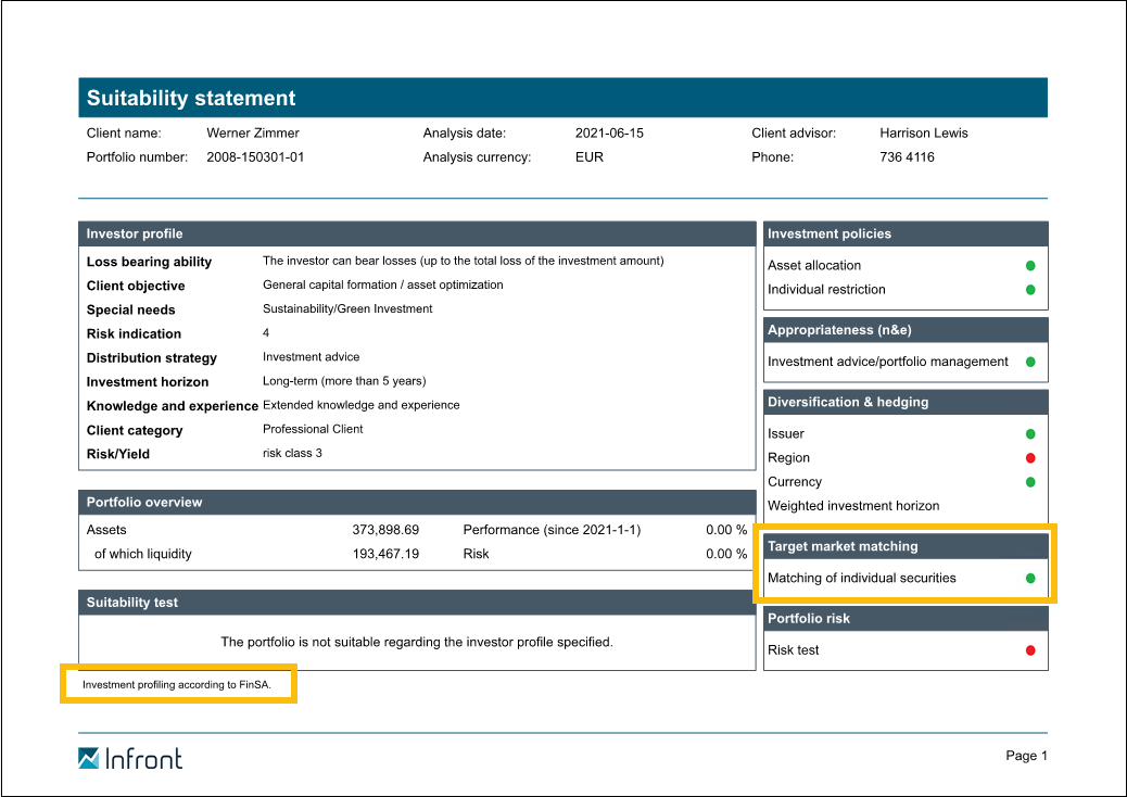 Corresponding information is displayed for FinSA holders under the "Suitability test" section.
