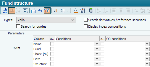 You can save the changed settings as a new table template (command: FILE, SAVE AS) or overwrite the previous "Fund structure" table with the new settings (FILE, SAVE AS command).