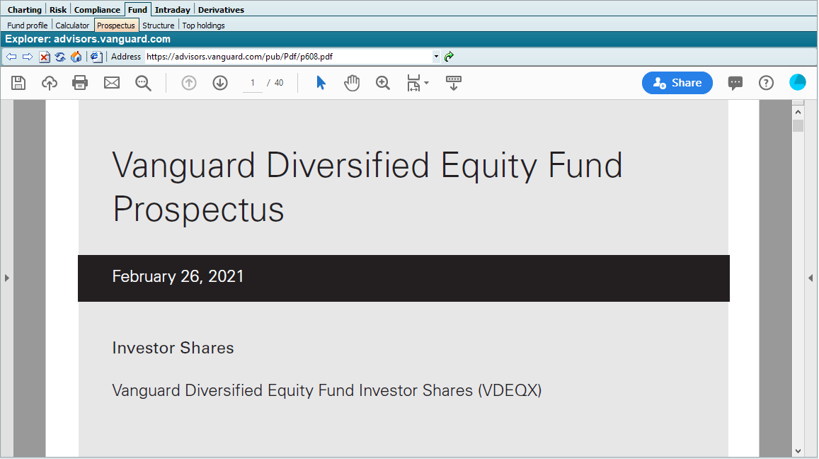 If you have licensed the "Fund prospectuses" module, open a fund prospectus as follows:
