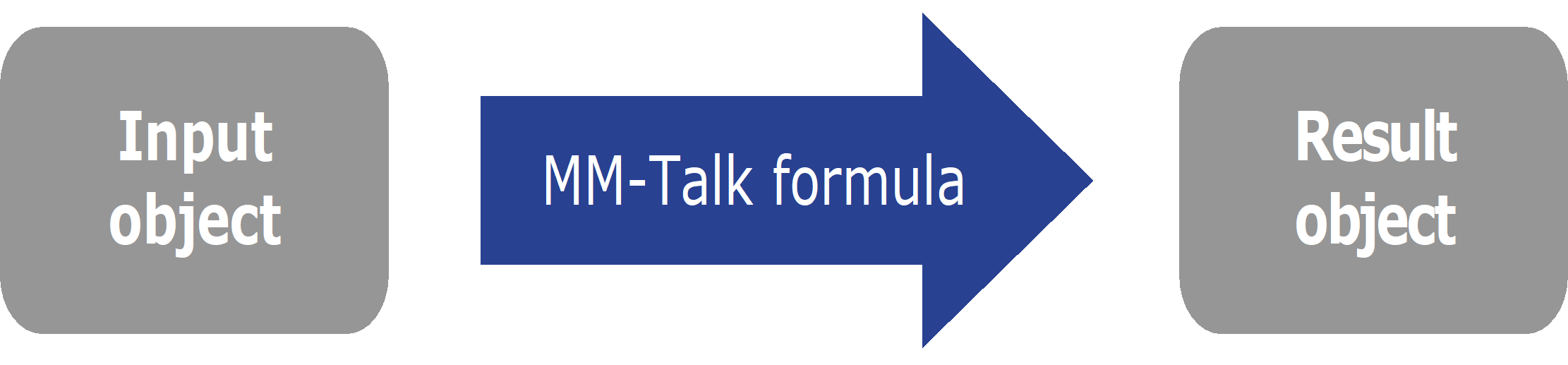 An MM-Talk formula is a combination of functions, variables and constants which, when applied to an object, produces a result object.