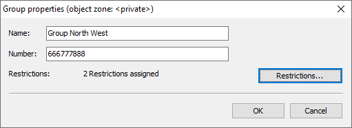 Here you can see the number of restrictions assigned at group level. Select the "Restrictions..." button to the right to assign restrictions to the group or to edit them.