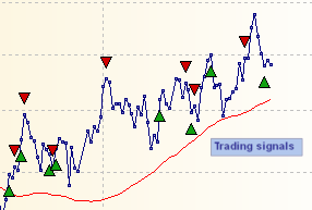 To show the signals of another trading system in the price history (if several trading systems are displayed), select the command SIGNAL SOURCE in the context menu of the price history.