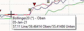 If you hover over a line with the mouse pointer (without clicking), a hint window for the line is displayed for multi-line time series, such as the Bollinger Bands.