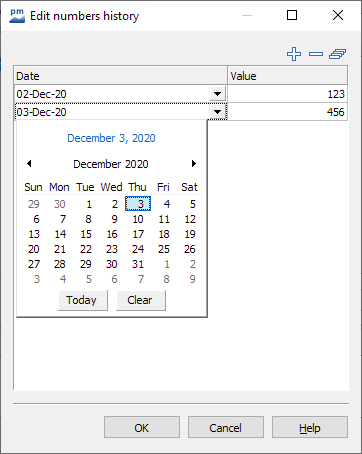 The "Date" column contains the date from which the corresponding value in the right-hand column applies. An empty date field means that the corresponding value applies to dates before the first specified date.
