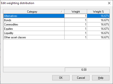 Click on the Enter button to open the "Edit weight distribution" dialog box.
