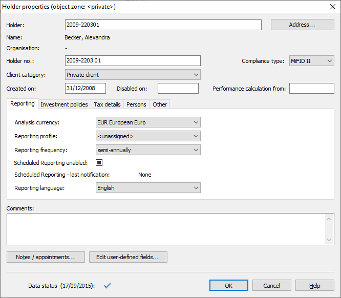 The classification of clients is one of the fundamental MiFID II requirements. Select the customer type of this owner from the selection list by clicking on it: