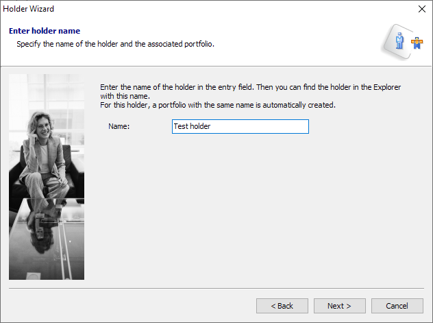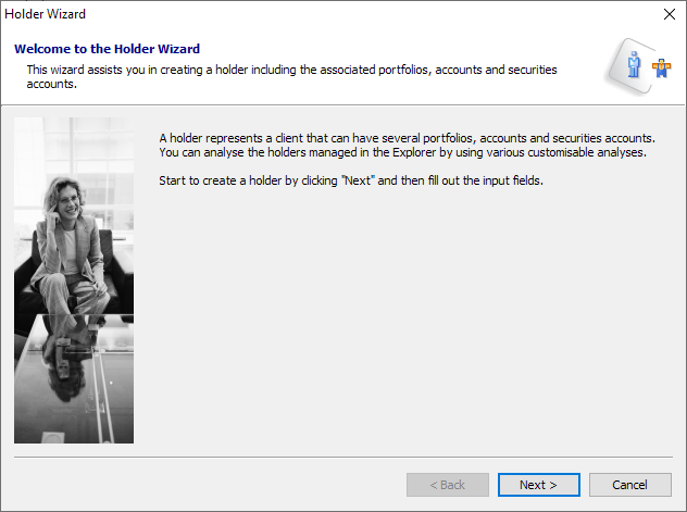 To create holders and their portfolios, accounts and custody accounts using the wizard, proceed as follows:
